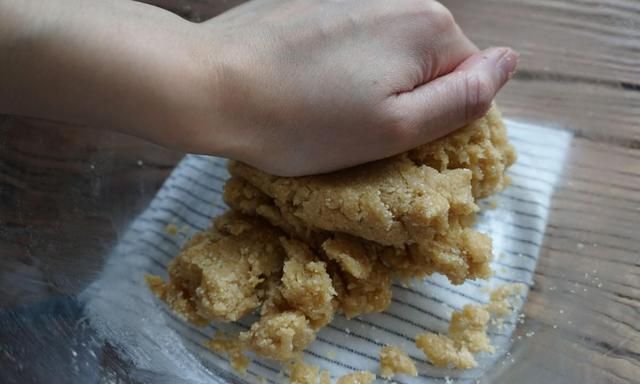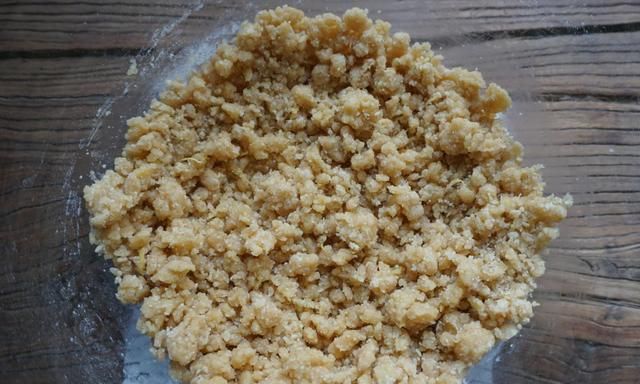3.用电动打蛋器搅成酥粒状后用手揉成面团